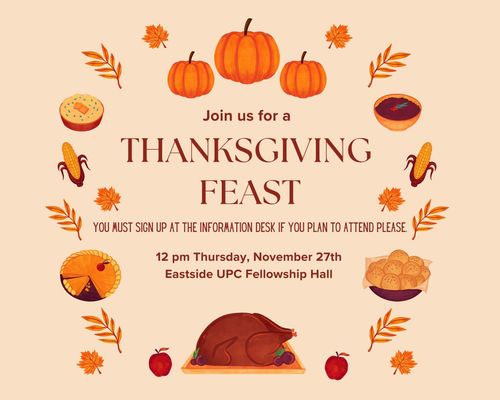 Anyone that would like to come fellowship and eat good food, please sign the sign-up sheet @ the information desk, so they can prepare enough food.